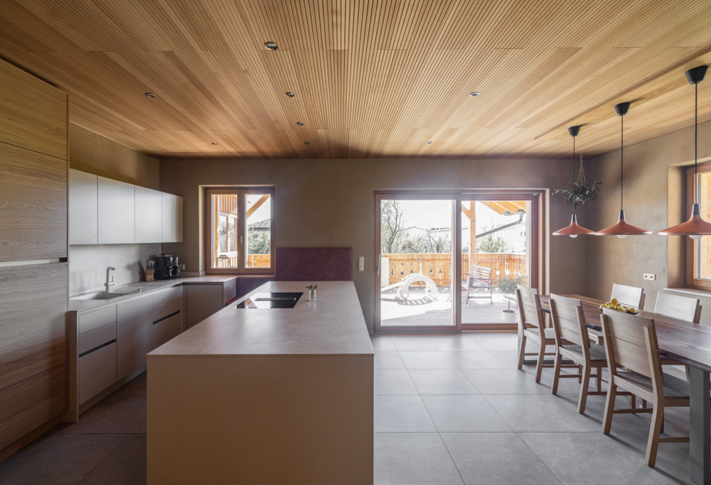 Construcții: Lemn masiv, grinzi stratificate, fațade din lemn și materiale izolatoare.