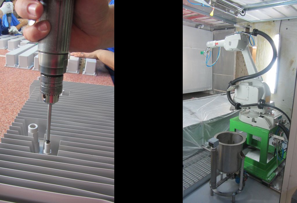 Materialele vopsite sunt plastice și metalice, iar vopsirea se face pe o linie de vopsire cu pulbere (roboți cu 6 pistoale + 2 pistoale manuale) și pe 3 linii de vopsire lichidă robotizată (100% automatizată sau semi-manuală cu 10 roboți de vopsire și 3 pistoale manuale).